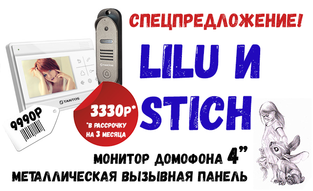 При покупке домофона LILU в комплекте с вызывной панелью, стоимость комплекта вместе с установкой и подключением к подъездной системе составит всего 9 990 рублей