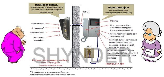 Домофон для квартиры, дома, офиса, больницы, школы, учреждений и предприятий состоит из следующих частей: