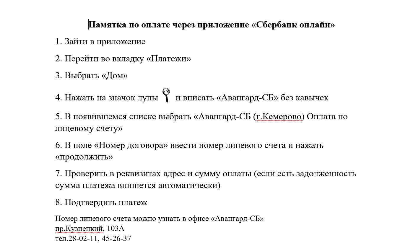 Памятка по оплате услуг через "Сбербанк Онлайн"